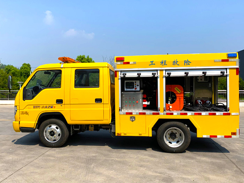 廂體內專用裝置是發電機機組,遠距離輸電裝置,電焊機以及應急搶險搶修時必備的光源,電源,氣源設備等工具;側面防護裝置采用裙邊結構構成,后面防護裝置為整體結構,后防護離地高度:400mm;ABS型號為CM4XL-4S/4M,生產廠家為廣州瑞立科密汽車電子股份有限公司;該車僅采用2850mm軸距改裝;選裝直接供電式ETC車載裝置; 選裝內部裝置樣式; 選裝外形樣式; 選裝工作燈時高度為2750,該車安裝有工作燈,行駛過程中不點亮,僅在駐車作業時起照明作用。