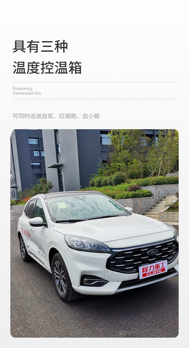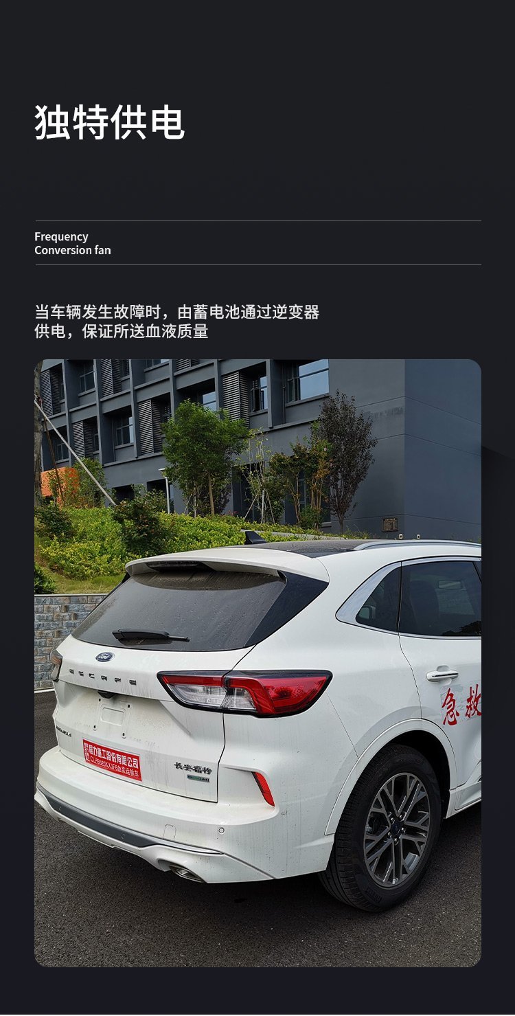 “生命之舟”急救送血車/血漿運輸車獨特優勢: 一、“生命之舟”急救送血車是中華人民共和國工業和信息化部公告(詳見車輛生產企業及產品第234批)公布的國內一家生產的血漿運輸車。 二、“生命之舟”急救送血車具有三種溫度控溫箱,可同時運送血漿、紅細胞、血小板。 三、“生命之舟”急救送血車具有三種供電方式: 1、出車前可用220V市電供壓縮機工作,把送血箱溫度降下來,減少汽油使用量。2、運輸中主要由加裝的電池供電。3、當車輛發生故障時,由蓄電池通過逆變器供電,保證所送血液質量。 四、“生命之舟”急救送血車箱溫控制精確,可控制在設定溫度±1℃。 五、“生命之舟”急救送血車紅細胞與血漿箱溫度可根據送血需要互相轉換,或調成同一溫度。 六、“生命之舟”急救送血車血漿箱溫度可控制在-22℃。 七、“生命之舟”急救送血車具有數據 功能,可長期保存運輸中溫度控制情況,便于查根溯源。